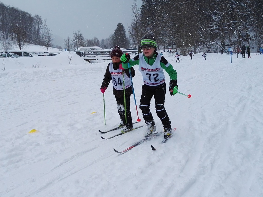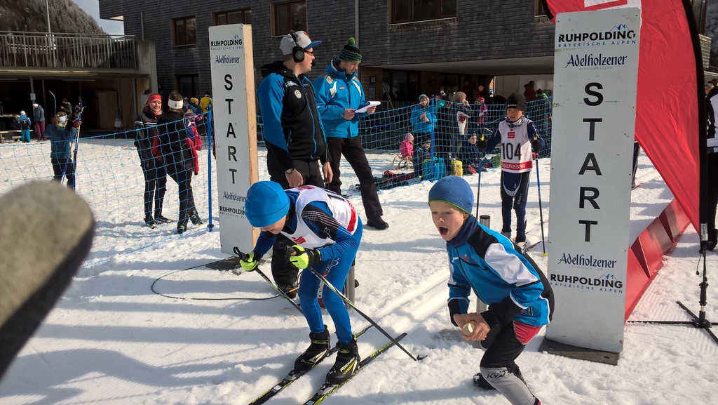 Bei den Kleinsten stand der Spaß im Vordergrund und so liefen Simon Eckel (Jg 2009) und Lisa Holler (Jg 2008) ohne Zeitnahme, aber mit Preisen für jeden. Bei den größeren ging es schon etwas spannender zu. In der Klasse Schüler 10 starteten gleich drei Mädchen vom SC Aising-Pang. In einem großen Feld von 17 Läuferinnen gewann Johanna Eckel die Gesamtwertung. Ihre Teamkolleginnen Annika Olfs als 7. und Delia Sacristan-Piazza als 8. vervollständigten das hervorragende Gesamtergebnis in dieser Altersgruppe. Bei den gleichaltrigen Buben erlief sich Leo Jakobi einen guten 9. Platz, sein ein Jahr älterer Bruder Max landete genau so wie Marinus Goeschl in der S11 im Mittelfeld. Bei den älteren Schülern mussten dann schon längere und auch anspruchsvollere Strecken, teilweise auf der Weltcupstrecke in Ruhpolding zurückgelegt werden. Hier waren in der S13 Henrik Olfs als 7. und Gloria Sacristan-Piazza als 13. der Gesamtwertung erfolgreich. Unser Ausnahmeathlet Johann Werner lief in der S15 bei seinem einzigen Rennen ganz oben auf's Stockerl, kam aber aufgrund seiner Teilnahme bei termingleichen überregionalen Rennen nicht in de Gesamtwertung.